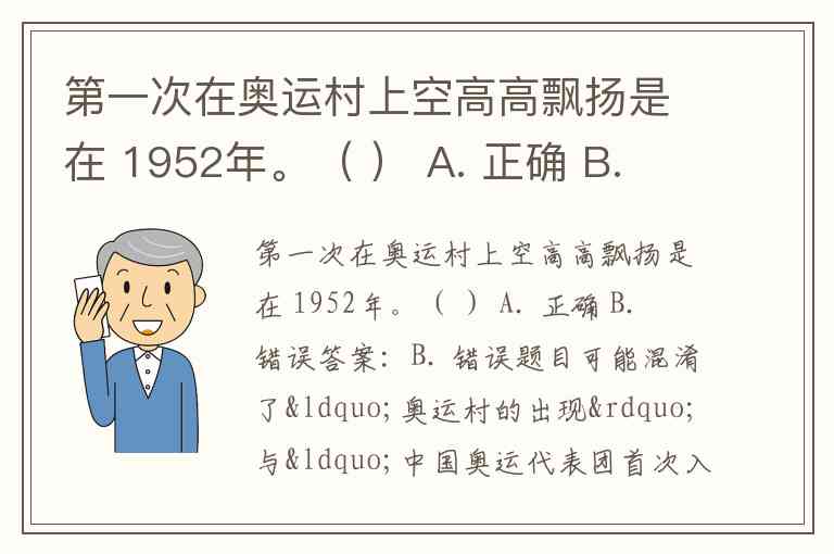 第一次在奥运村上空高高飘扬是在 1952年。( ) A. 正确 B. 错误