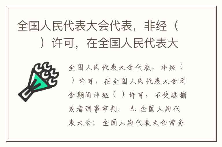 根据《中华人民共和国宪法》第八十二条规定, 全国人民代表大会代表在全国人民代表大会闭会期间,非经全国人民代表大会常务委员会许可,不受逮捕或者刑事审判。