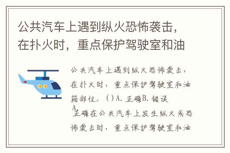 在公共汽车上发生纵火或恐怖袭击时,重点保护驾驶室和油箱部位是正确的应对策略。