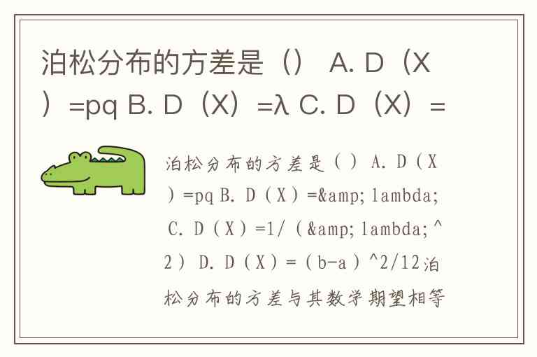 泊松分布的方差是() A. D(X)=pq B. D(X)=λ C. D(X)=1/(λ^2) D. D(X)=(b-a)^2/12