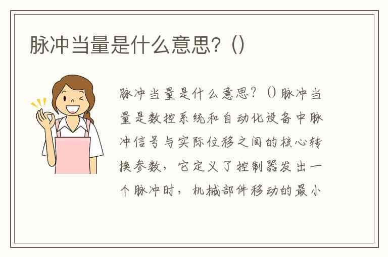 脉冲当量是数控系统和自动化设备中脉冲信号与实际位移之间的核心转换参数,它定义了控制器发出一个脉冲时,机械部件移动的最小距离(直线运动)或转动角度(旋转运动)。这个参数直接决定了设备的控制精度——数值越小,系统能实现的位移分辨率越高,加工或定位精度也越优。例如,当脉冲当量设为0.001mm/pulse时,意味着每个脉冲可驱动部件移动0.001毫米,而若设为0.01mm/pulse,最小位移精度则降至前者的十分之一。