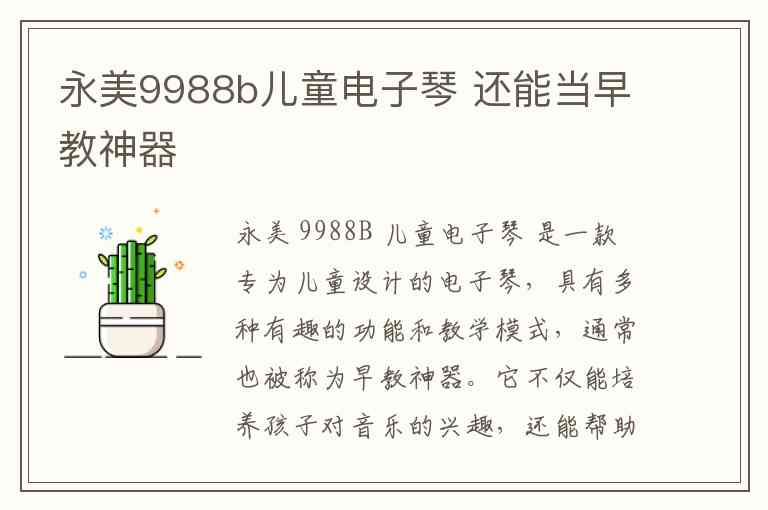 如果你的目标是让孩子通过游戏和互动的方式培养对音乐的兴趣,并且发展一些基础的音乐能力,永美 9988B 是一个非常不错的选择。