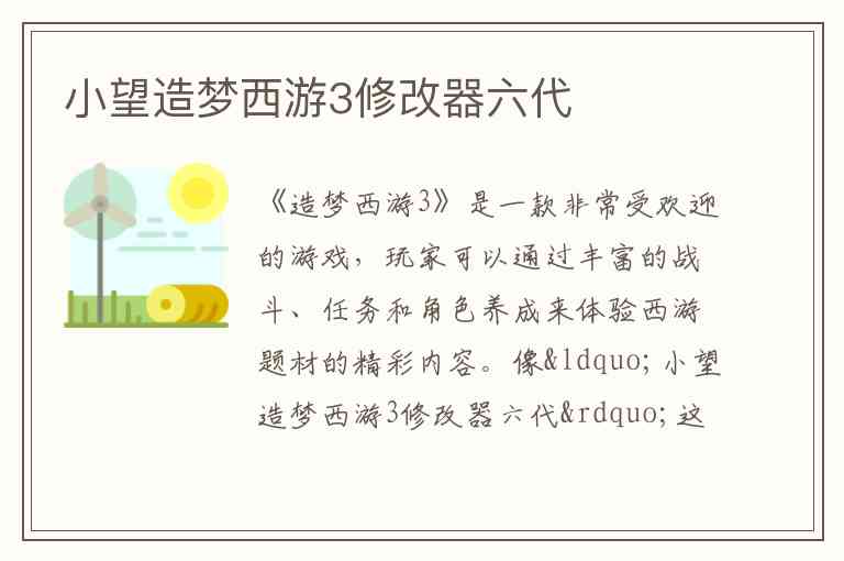 “小望造梦西游3修改器六代”是一款辅助工具,用于帮助玩家在《造梦西游3》中修改数据,提升游戏体验。不过,使用此类工具需要小心,尤其是在涉及到网络连接的游戏中,修改器的使用可能会违反游戏规则,导致账号封禁等问题。建议玩家理性使用,并确保修改器来源安全。