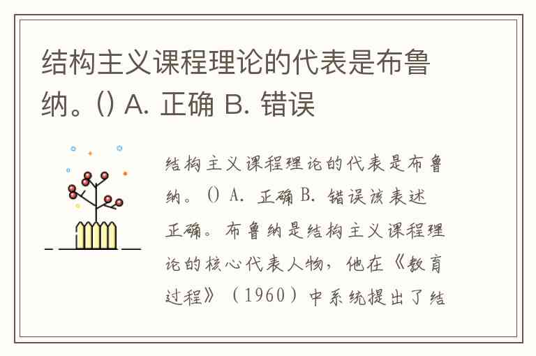 结构主义课程理论的代表是布鲁纳。() A. 正确 B. 错误