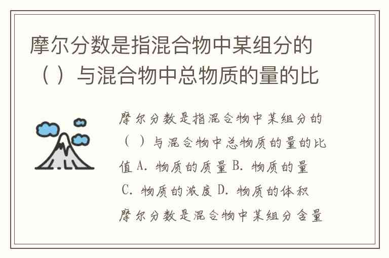 摩尔分数是指混合物中某组分的( )与混合物中总物质的量的比值 A. 物质的质量 B. 物质的量 C. 物质的浓度 D. 物质的体积