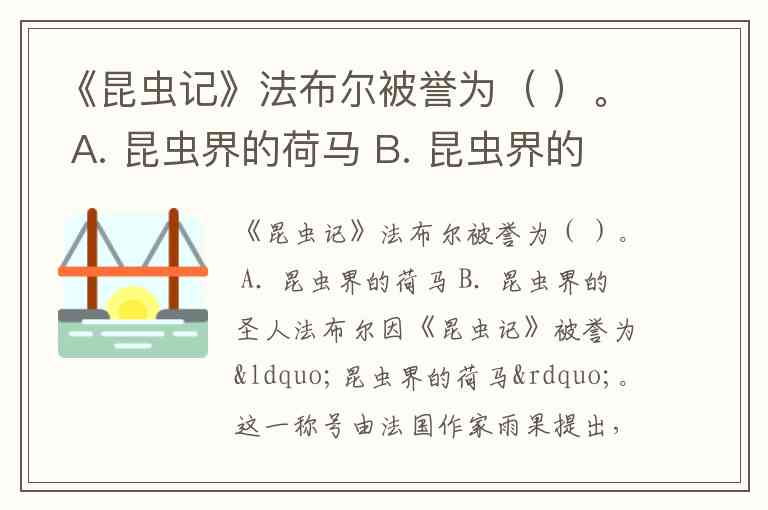 《昆虫记》法布尔被誉为( )。 A. 昆虫界的荷马 B. 昆虫界的圣人