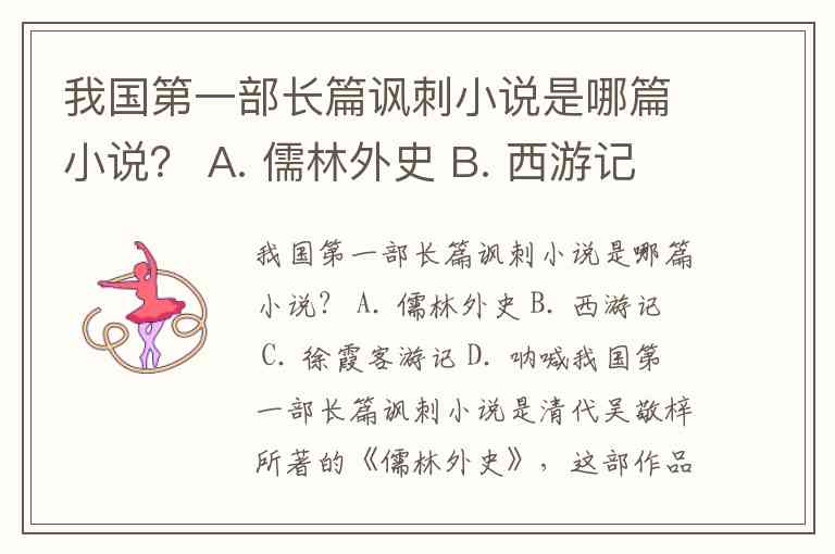 我国第一部长篇讽刺小说是哪篇小说? A. 儒林外史 B. 西游记 C. 徐霞客游记 D. 呐喊