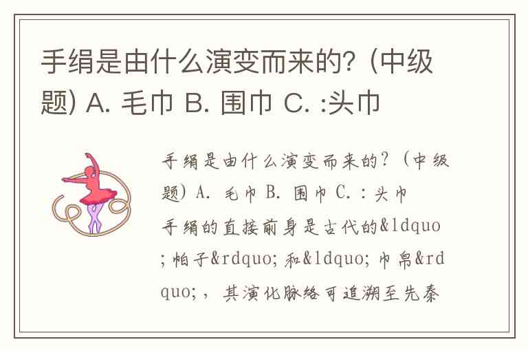 手绢是由什么演变而来的?(中级题) A. 毛巾 B. 围巾 C. :头巾