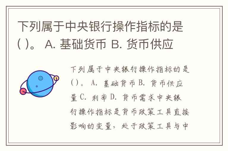 下列属于中央银行操作指标的是( )。 A. 基础货币 B. 货币供应量 C. 利率 D. 货币需求