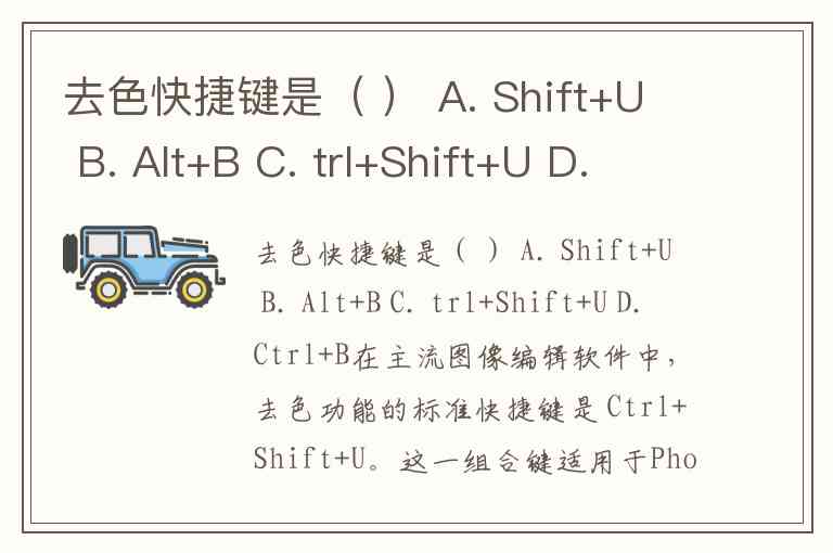 去色快捷键是( ) A. Shift+U B. Alt+B C. trl+Shift+U D. Ctrl+B