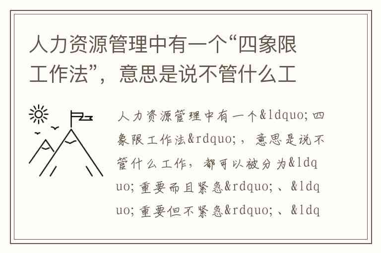 这段文字围绕“四象限工作法”展开,强调通过合理安排工作(即分清轻重缓急)提升效率,指出未领悟该方法精髓会导致“事倍功半”,而高效管理者与糟糕管理者的效率差异可达10倍以上。