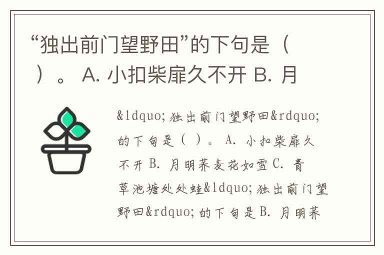 “独出前门望野田”的下句是( )。 A. 小扣柴扉久不开 B. 月明荞麦花如雪 C. 青草池塘处处蛙