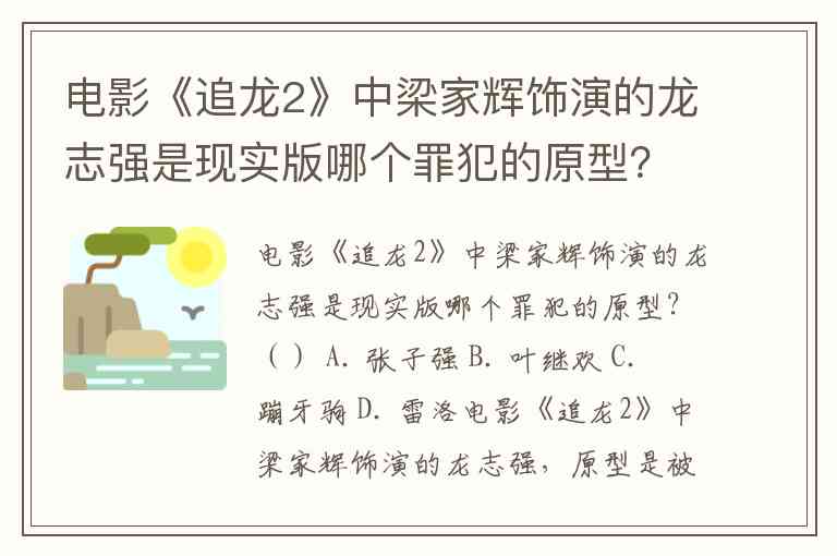 电影《追龙2》中梁家辉饰演的龙志强是现实版哪个罪犯的原型?() A. 张子强 B. 叶继欢 C. 蹦牙驹 D. 雷洛
