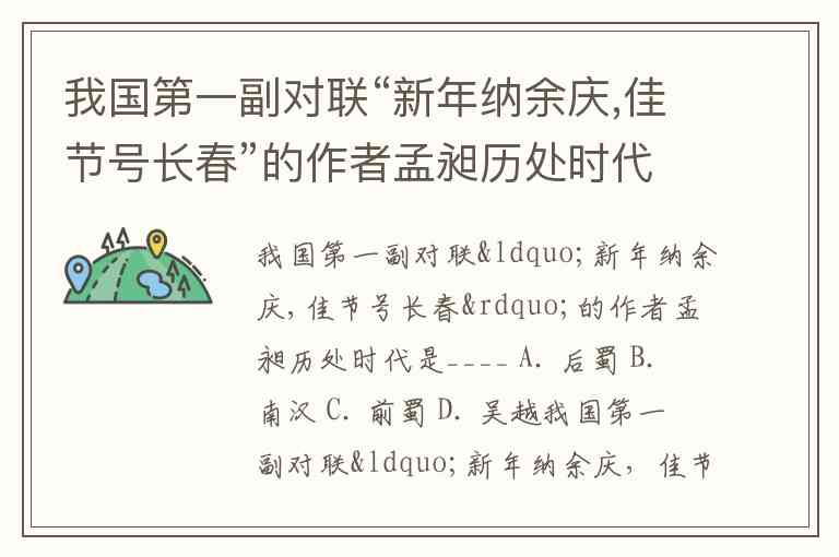 我国第一副对联“新年纳余庆,佳节号长春”的作者孟昶历处时代是____ A. 后蜀 B. 南汉 C. 前蜀 D. 吴越