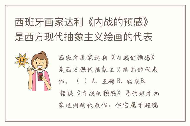 西班牙画家达利《内战的预感》是西方现代抽象主义绘画的代表作。 ( ) A. 正确 B. 错误