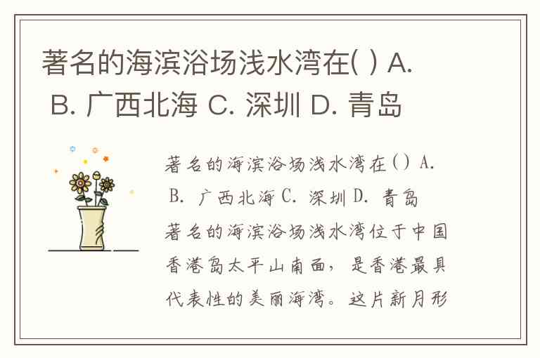 著名的海滨浴场浅水湾在( ) A. B. 广西北海 C. 深圳 D. 青岛