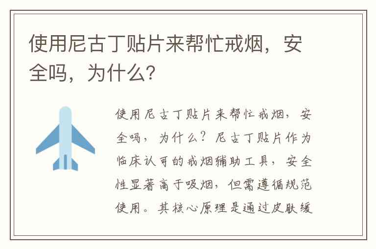 使用尼古丁贴片来帮忙戒烟,安全吗,为什么?