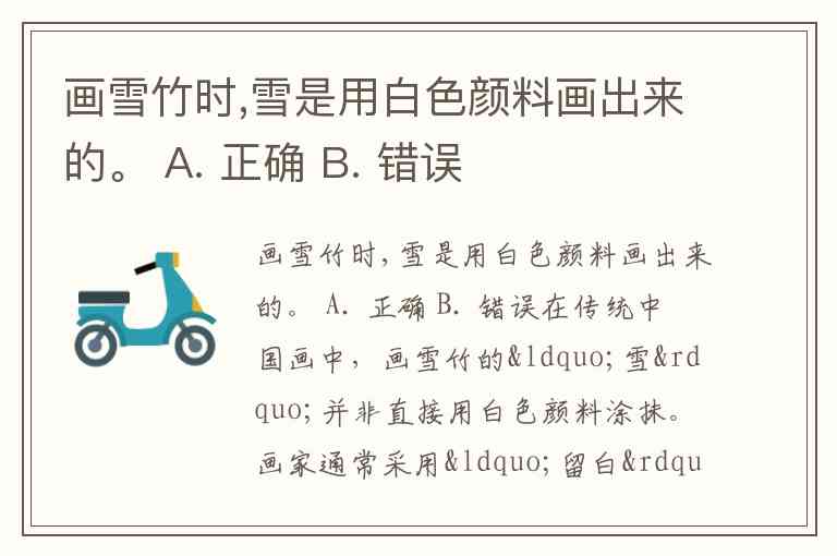 画雪竹时,雪是用白色颜料画出来的。 A. 正确 B. 错误