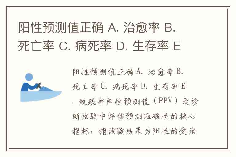 阳性预测值正确 A. 治愈率 B. 死亡率 C. 病死率 D. 生存率 E. 致残率