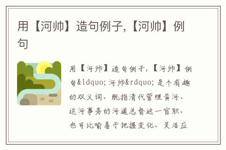 “河帅”是个有趣的双义词,既指清代管理黄河、运河事务的河道总督这一官职,也可比喻善于把握变化、灵活应对的智慧型人物。以下是结合不同含义的造句示例: