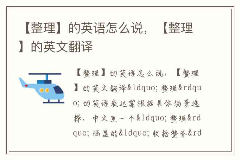 “整理”的英语表达需根据具体场景选择,中文里一个“整理”涵盖的“收拾整齐”“分类归纳”“取舍决策”等动作,在英语中需用不同词汇精准对应。比如想表达“整理衣柜”,用“clean the closet”会让外国人困惑,因为clean侧重“打扫”,而整理衣柜应说“sort out the closet”。
