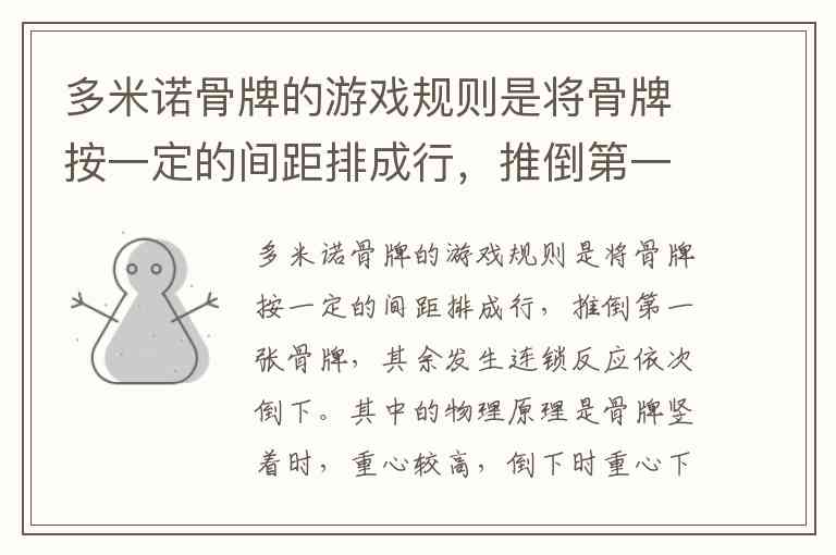 选项A错误,因为每张骨牌的能量并非定值,而是通过传递不断叠加;选项B和C忽略了能量传递的本质——后一张骨牌实际获得的能量大于前一张,空气阻力的影响远小于能量增益。这一现象也解释了为何微小的初始力能引发显著的连锁反应,正如"多米诺效应"所比喻的,能量在传递中被不断放大。