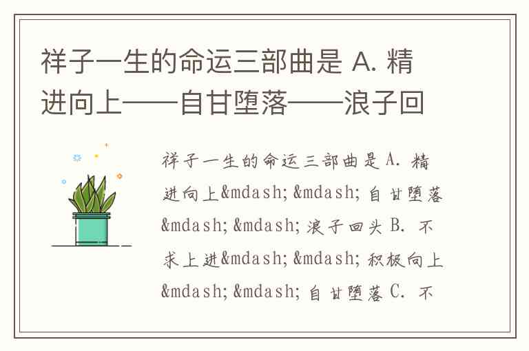 祥子一生的命运三部曲是 A. 精进向上——自甘堕落——浪子回头 B. 不求上进——积极向上——自甘堕落 C. 不求上进——有所奋发——积极向上 D. 积极向上——不甘失败——自甘堕落