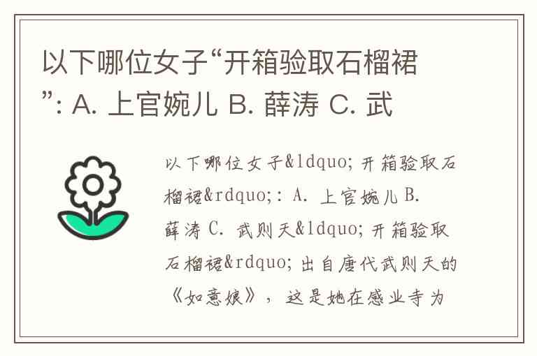 以下哪位女子“开箱验取石榴裙”: A. 上官婉儿 B. 薛涛 C. 武则天