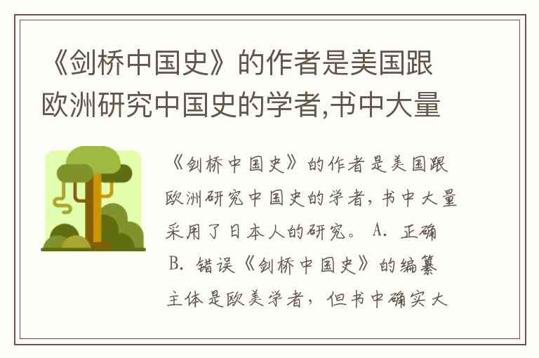 《剑桥中国史》的作者是美国跟欧洲研究中国史的学者,书中大量采用了日本人的研究。 A. 正确 B. 错误