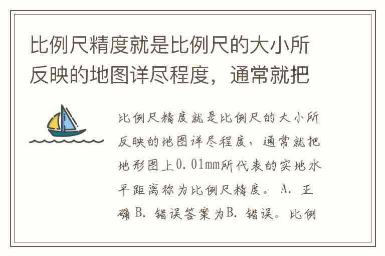 比例尺精度就是比例尺的大小所反映的地图详尽程度,通常就把地形图上0.01mm所代表的实地水平距离称为比例尺精度。 A. 正确 B. 错误