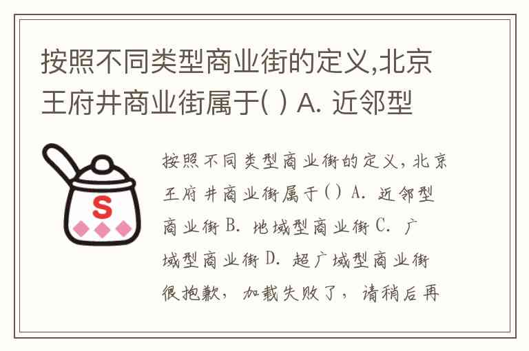 按照不同类型商业街的定义,北京王府井商业街属于( ) A. 近邻型商业街 B. 地域型商业街 C. 广域型商业街 D. 超广域型商业街