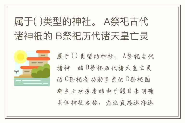属于( )类型的神社。 A祭祀古代诸神祇的 B祭祀历代诸天皇亡灵的 C祭祀有功勋皇亲的 D祭祀国郡乡土功劳者的