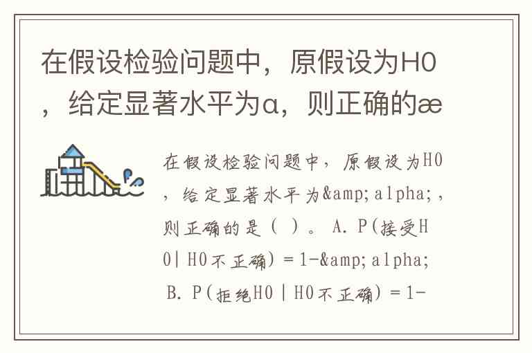 选项A“P(接受H₀| H₀不正确)=1-α”描述的是H₀为假时接受H₀的概率,这属于第二类错误,其概率应为β而非1-α。因此A错误。