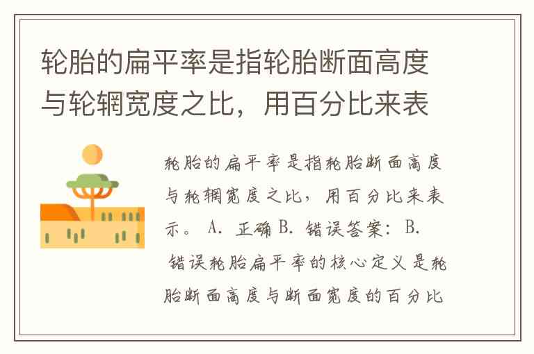 轮胎的扁平率是指轮胎断面高度与轮辋宽度之比,用百分比来表示。 A. 正确 B. 错误