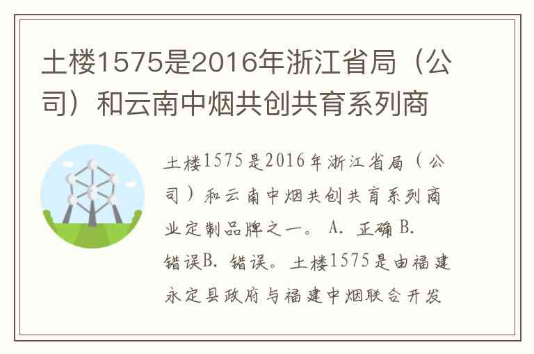 土楼1575是2016年浙江省局(公司)和云南中烟共创共育系列商业定制品牌之一。 A. 正确 B. 错误