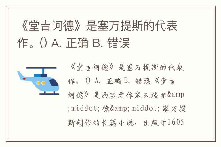 《堂吉诃德》是塞万提斯的代表作。() A. 正确 B. 错误