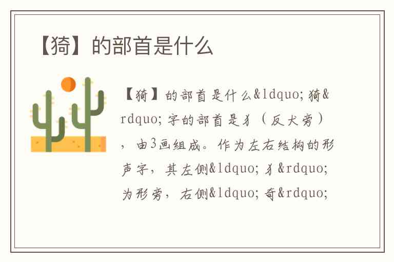 “猗”字的部首是犭(反犬旁),由3画组成。作为左右结构的形声字,其左侧“犭”为形旁,右侧“奇”为声旁。在简体中文中,“猗”的部首统一标注为“犭”,而繁体形式“猗”的部首则为“犬”,笔画数相应增加到4画。这一构字方式体现了汉字“形声相益”的特点,通过部首可初步关联到与动物相关的语义范畴,尽管“猗”在现代汉语中更常用于感叹词或形容词(如“猗猗”形容草木茂盛)。