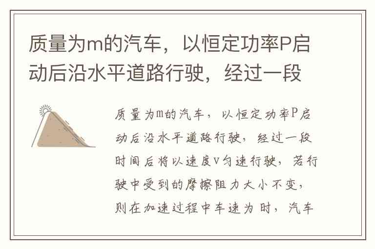 质量为m的汽车,以恒定功率P启动后沿水平道路行驶,经过一段时间后将以速度v匀速行驶,若行驶中受到的摩擦阻力大小不变,则在加速过程中车速为 时,汽车的加速度大小为( ) A. B. C. D.
