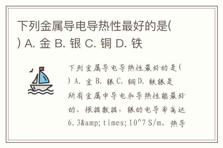 下列金属导电导热性最好的是( ) A. 金 B. 银 C. 铜 D. 铁