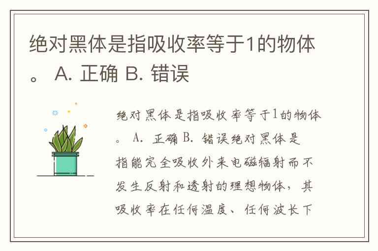 绝对黑体是指吸收率等于1的物体。 A. 正确 B. 错误