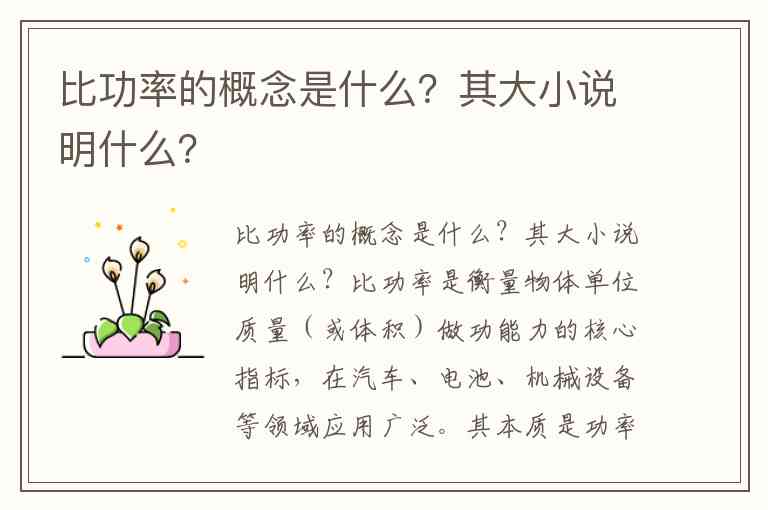 比功率的概念是什么?其大小说明什么?