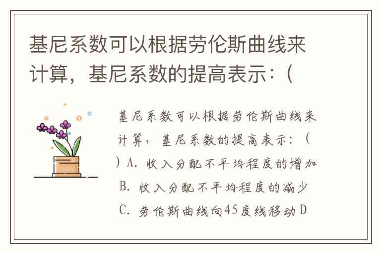 C. 劳伦斯曲线向45度线移动:错误。劳伦斯曲线越接近45度线,说明收入分配越平等;如果基尼系数提高,劳伦斯曲线会远离45度线,呈现出更弯曲的形态。