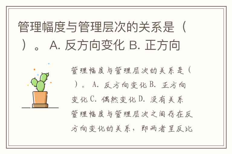 管理幅度与管理层次的关系是( )。 A. 反方向变化 B. 正方向变化 C. 偶然变化 D. 没有关系