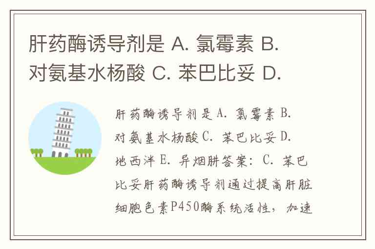 肝药酶诱导剂是 A. 氯霉素 B. 对氨基水杨酸 C. 苯巴比妥 D. 地西泮 E. 异烟肼