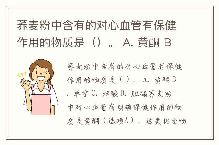 荞麦粉中含有的对心血管有保健作用的物质是()。 A. 黄酮 B. 单宁 C. 烟酸 D. 胆碱