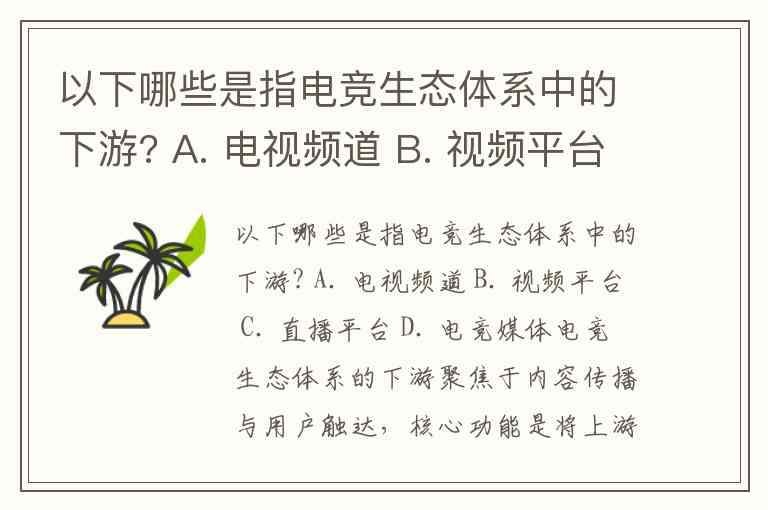 以下哪些是指电竞生态体系中的下游? A. 电视频道 B. 视频平台 C. 直播平台 D. 电竞媒体