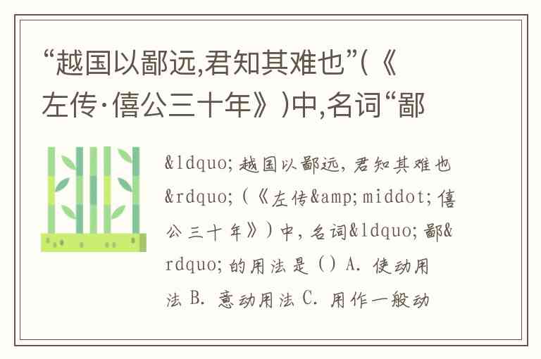 “越国以鄙远,君知其难也”(《左传·僖公三十年》)中,名词“鄙”的用法是 ( ) A. 使动用法 B. 意动用法 C. 用作一般动词 D. 用作形容词