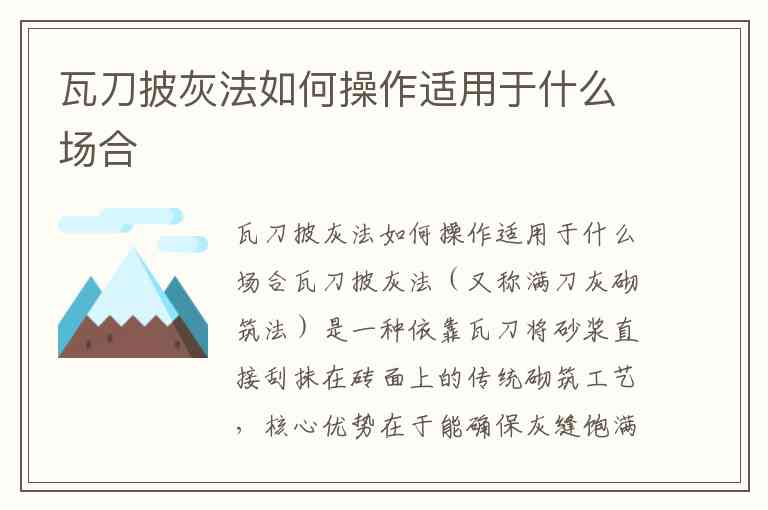 瓦刀披灰法如何操作适用于什么场合