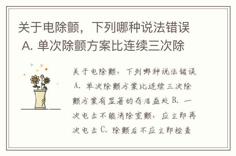 在电除颤的操作规范中,B选项“一次电击不能消除室颤,应立即再次电击”存在错误。现代急救指南强调单次除颤后需立即恢复心肺复苏,而非连续电击。