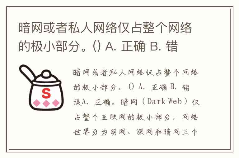 A. 正确。暗网(Dark Web)仅占整个互联网的极小部分。